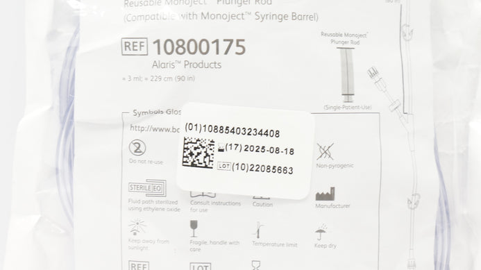 BD 10800175 PCA Administration Kit Reusable Monoject Plunger Rod 3mL x 90inch