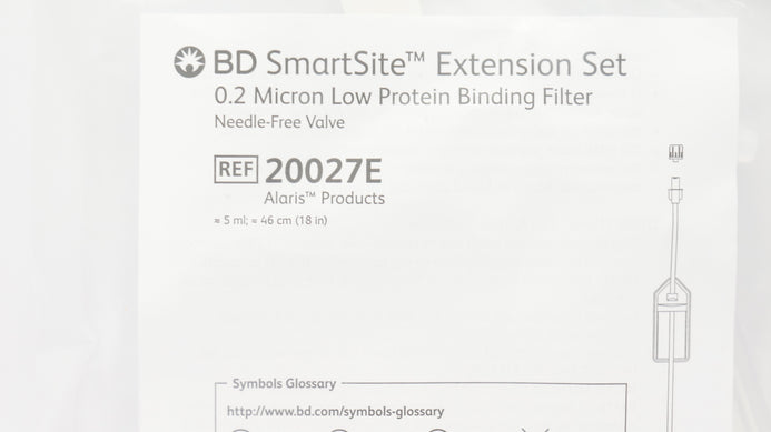 - BD 20027E SmartSite Extension Set Low Protein Binding Filter 5ml x 18inch