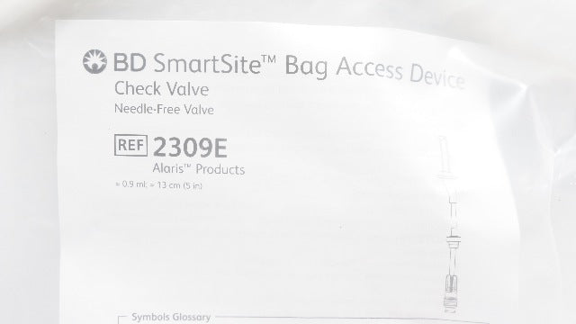 - BD 2309E SmartSite Bag Access Device, Check Valve Ndle.-Free, 0.9 mL x 5inch (x)