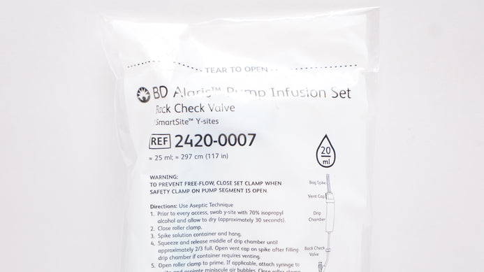 BD 2420-0007 Alaris Pump Infusion Set Back Check Valve 117inch x 25ml 20Drops/ml