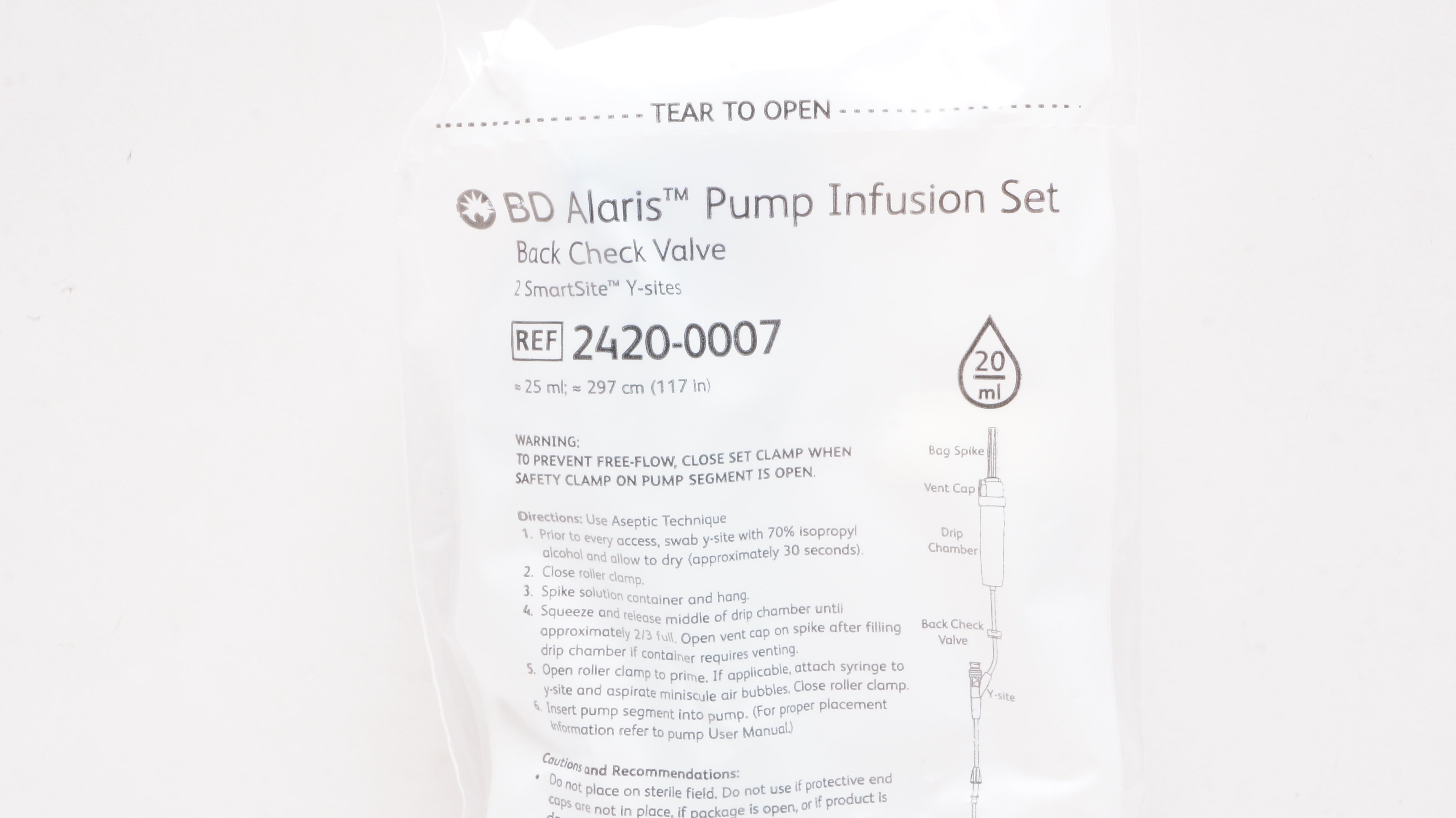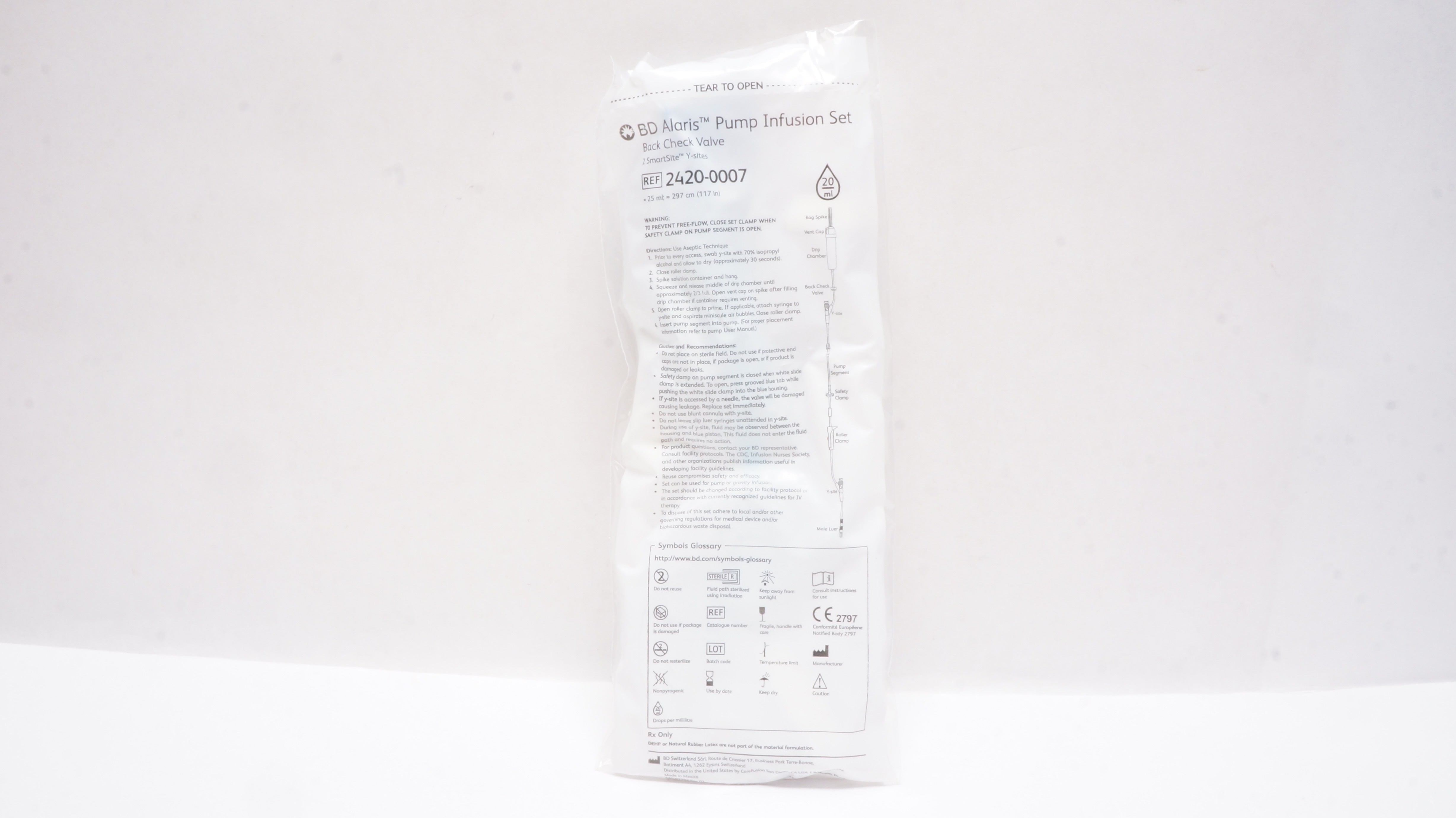 BD 2420-0007 Alaris Pump Infusion Set Back Check Valve 117inch x 25ml 20Drops/mL