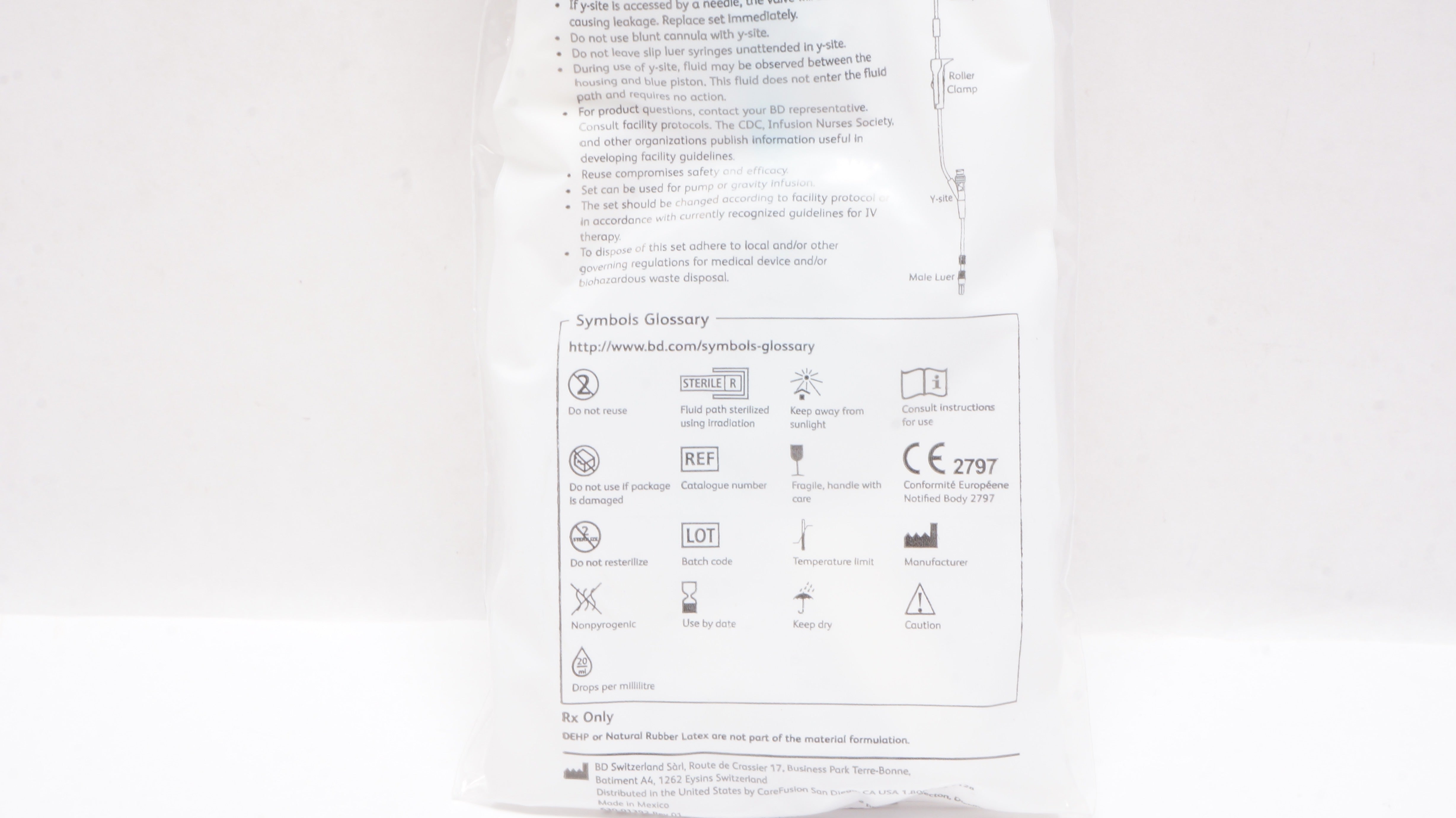 BD 2420-0007 Pump Infusion Set Back Check Valve 117inch x 25ml 20Drops/ml