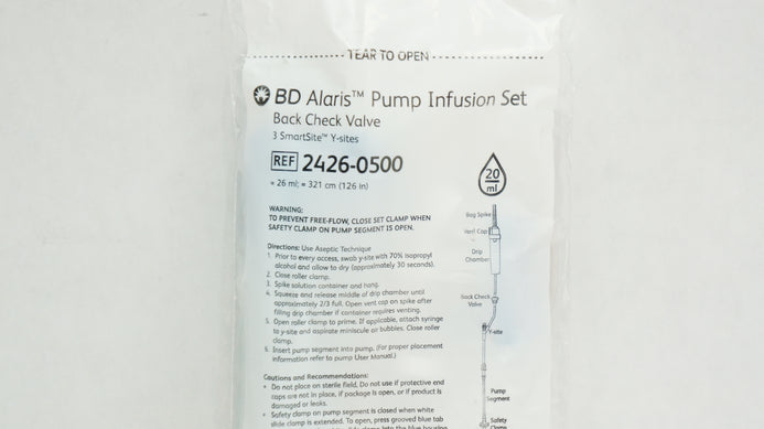 BD 2426-0500 Alaris Pump Infusion Set Back Check Valve 3 SmartSite Y-Sites 26mL x 126inch Approx. 20Drops/mL