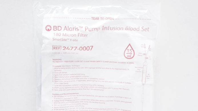 - BD 2477-0007 Alaris Pump Infusion Blood Set, 15Drops/ml 33ml x 121inch Approx.