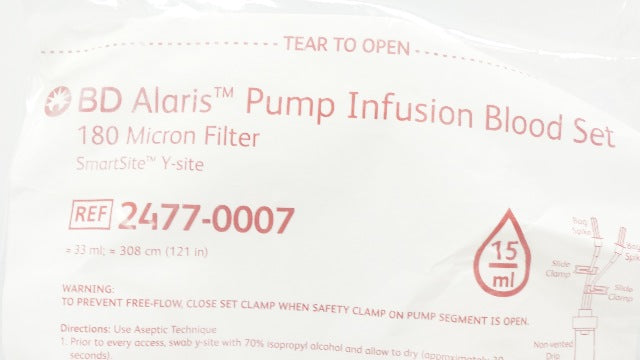 - BD 2477-0007 Alaris Pump Infusion Blood Set, 15Drops/ml 33ml x 121inch Approx.