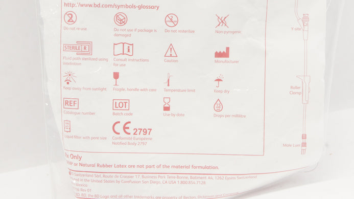 BD 2477-0007 Alaris Pump Infusion Blood Set 180 Micron Filter 33ml x 121inch