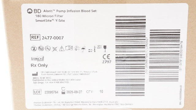 - BD 2477-0007 Alaris Pump Infusion Blood Set Filter 33ml x 121inch - Box of10