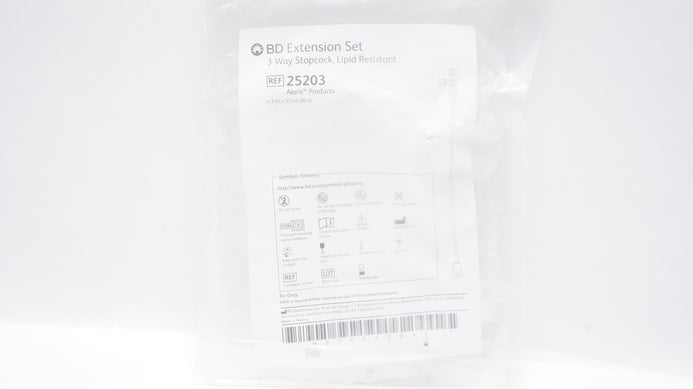 - BD 25203 Alaris Extension Set 3-Way Stopcock, Lipid Resistant 3ml x 20inch (x)
