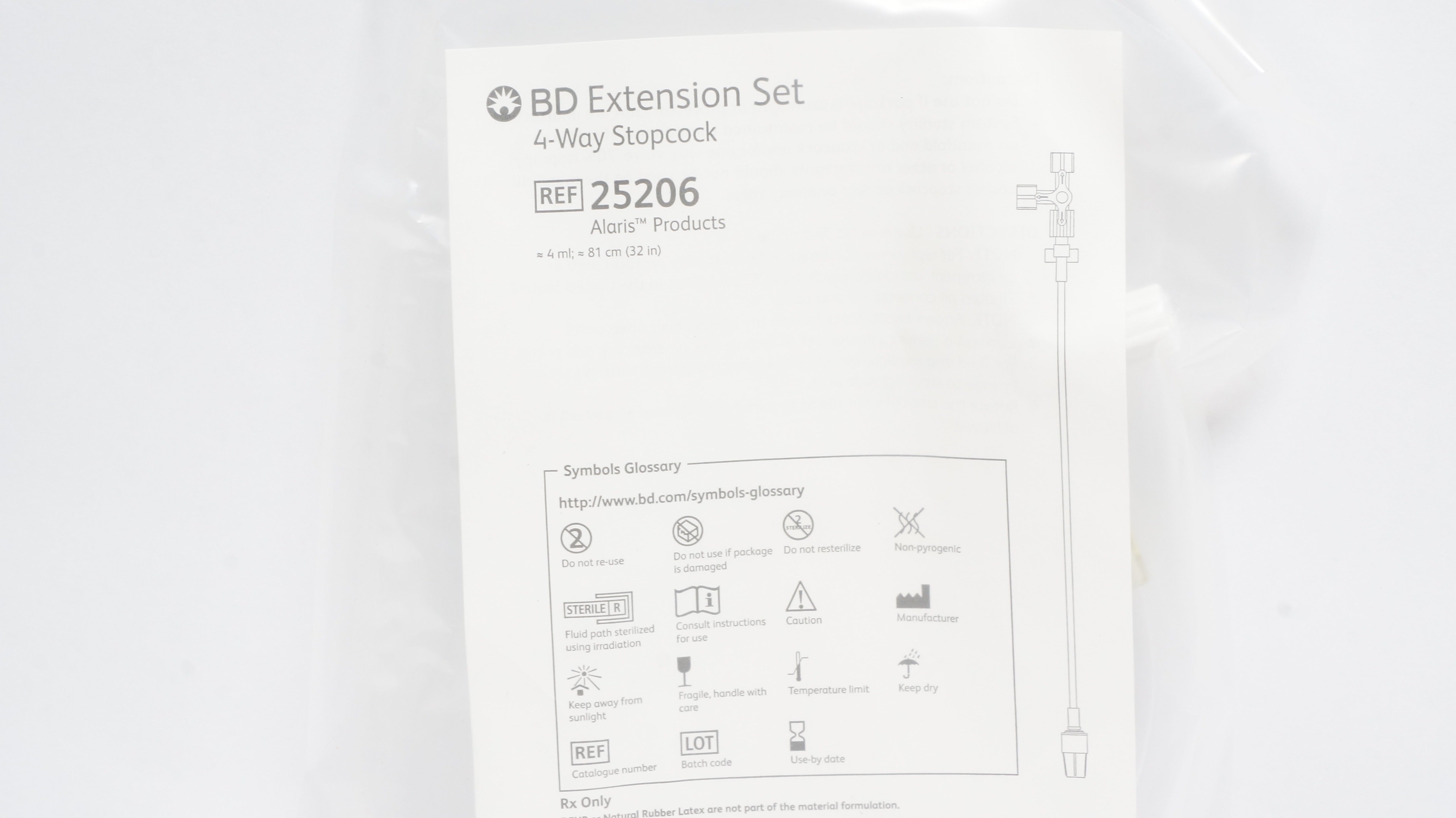 - BD 25206 Alaris Extension Set 4-Way Stopcock 4mL x 32inch