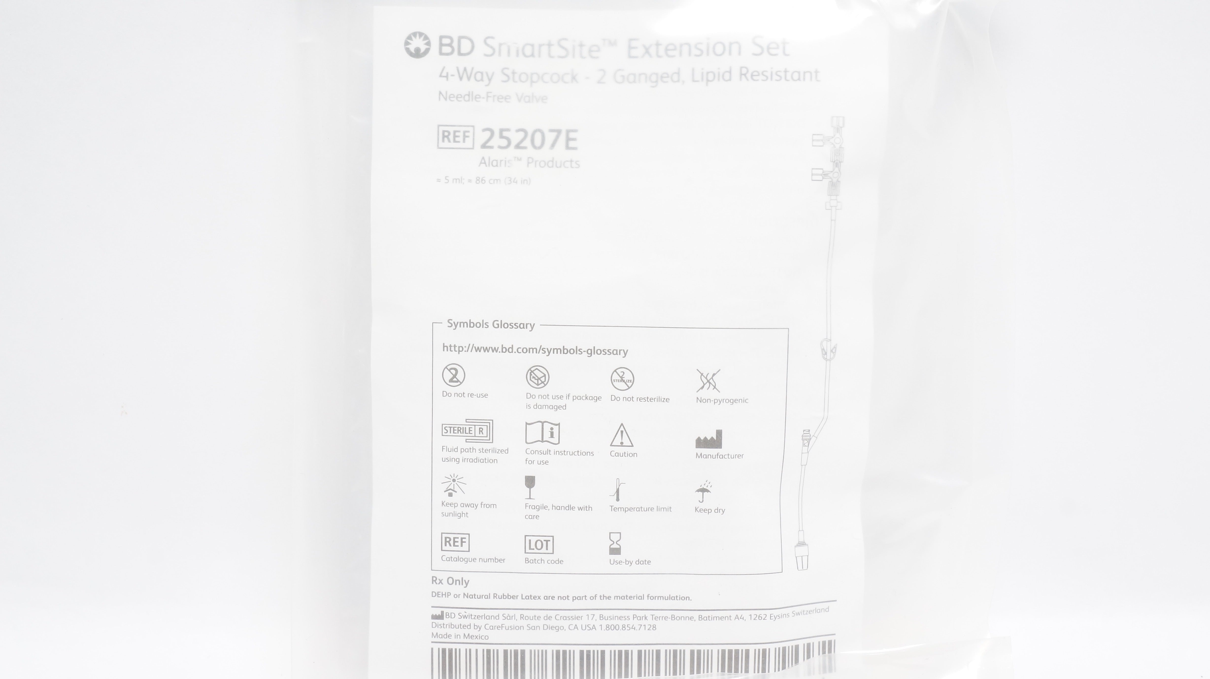 - BD 25207E SmartSite Extension Set 4-Way Stopcock -2 Ganged, 5ml, 34In (x)