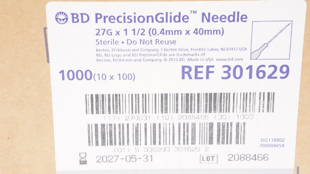 - BD 301629 PrecisionGlide Ndle 27G x 1-1/2 - Case of 1000