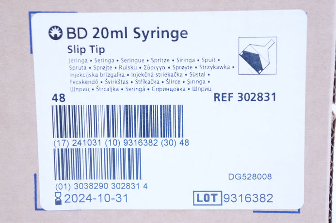 BD 302831 Becton 20ml Syringe Slim Tip ~ Case of 48
