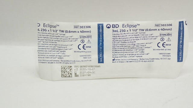 BD 303306 Eclipse Injection Needle W/Luer-Lok Syringe 3mL 23G x 1 1/2inch TW