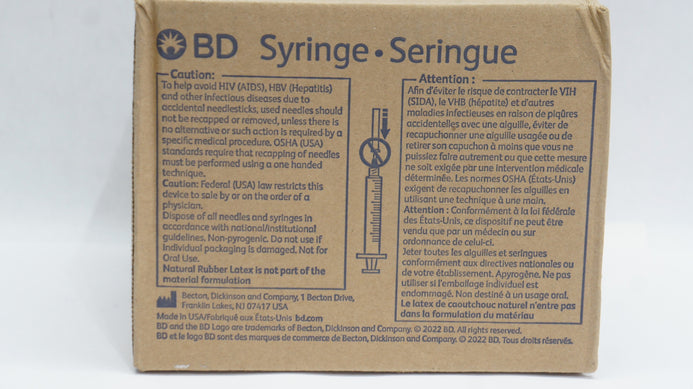BD 303344 1mL TB Syringe Slip Tip w/Bevel Ndle 27G x 3/8inch - Case of 100