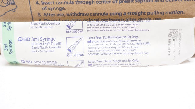 BD 303346 3ml Syringe Luer-Lok Tip with Blunt Plastic Cannula