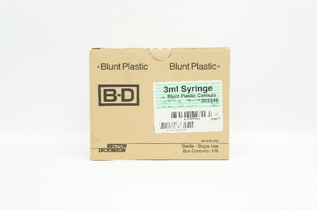 - BD 303346 Syringe Luer-Lock Tip with Blunt Plastic Cannula, 3mL - Case of 100