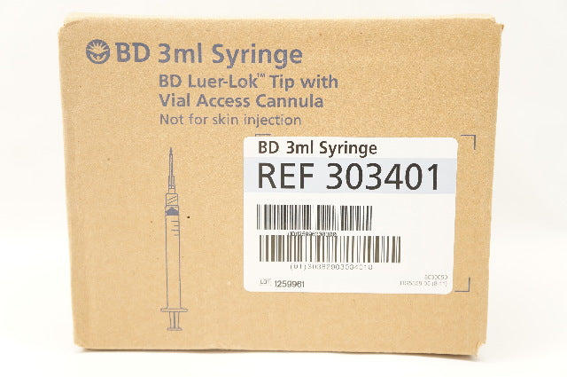 BD 303401 Luer-Lok Tip with Vial Access Cannula 3ml Syringe - Box of 100