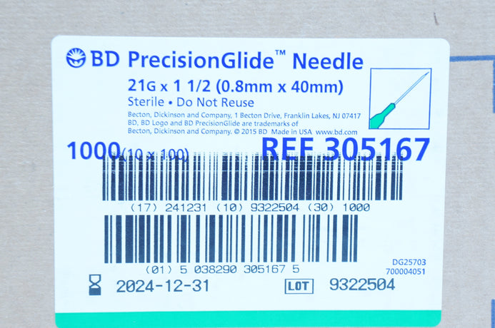 BD 305167 PrecisionGlide Needle 21G x 1-1/2inch