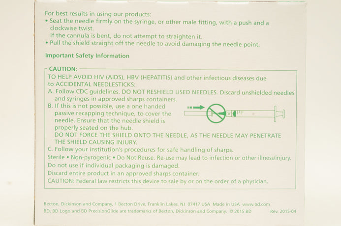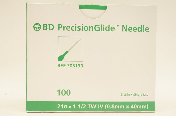 BD 305190 Becton PrecisionGlide Ndle. TW IV, 21G x 1-1/2inch - Box of 100