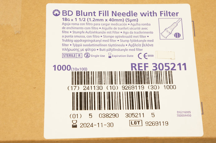 - BD 305211 Blunt Fill Ndle with Filter 18G x 1-1/2 - Case of 1000
