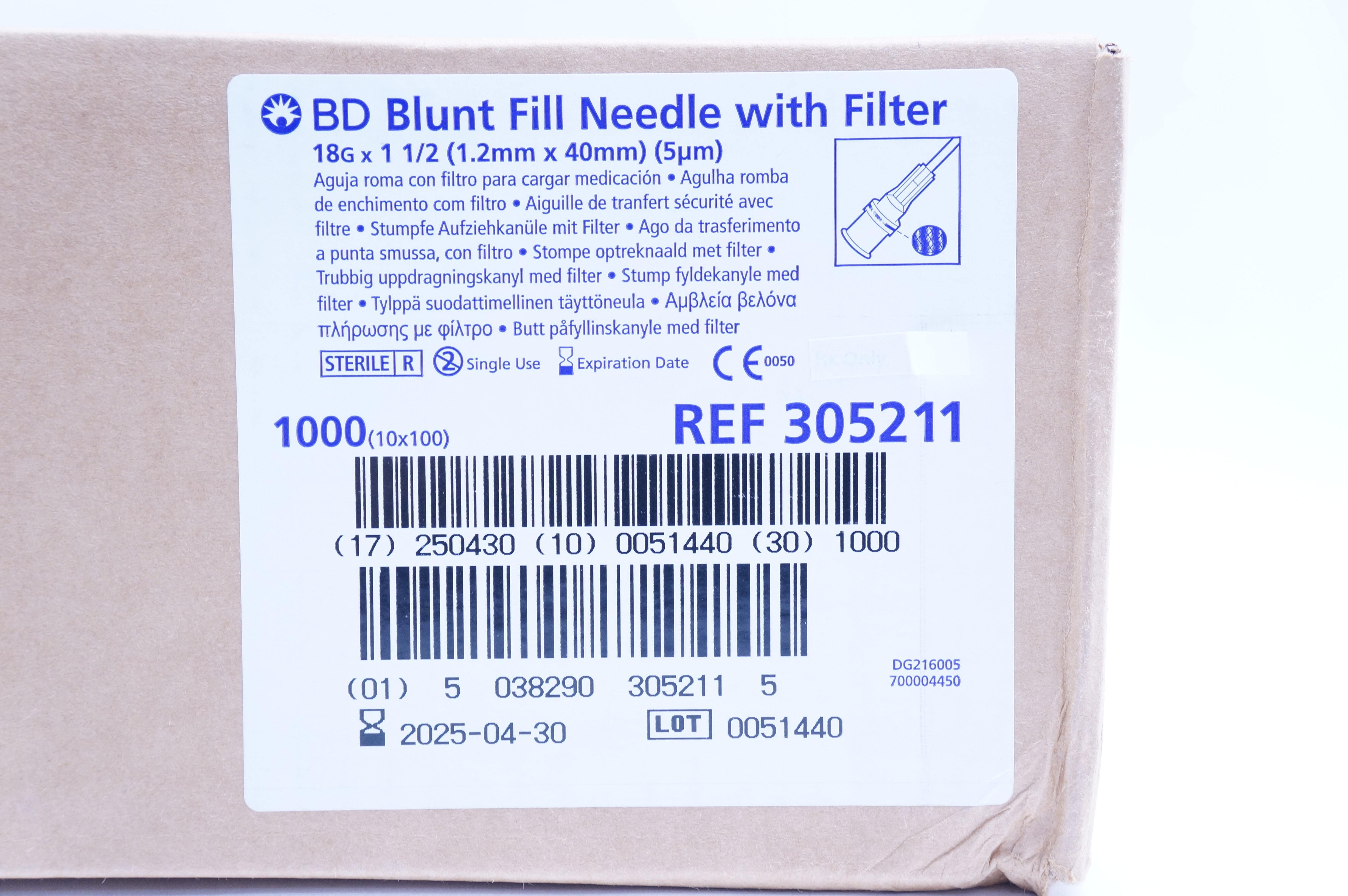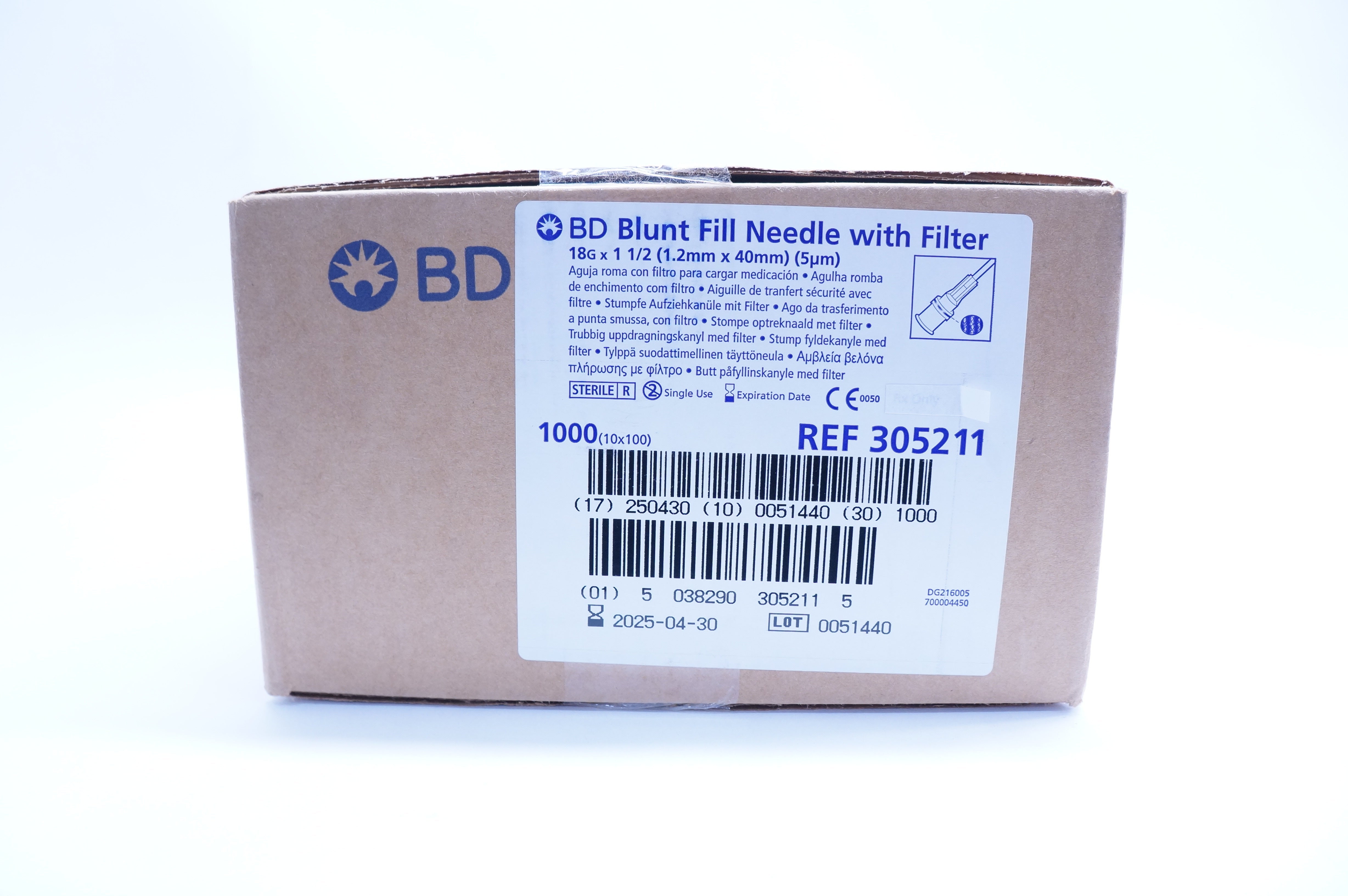 - BD 305211 Blunt Fill Ndle. with Filter 18G x 1 1/2in - Box of 1000