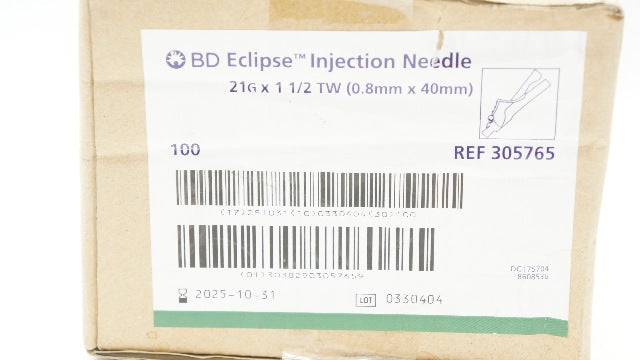 - BD 305765 Eclipse Injection Ndle 21G x 1 1/2 TW - Box of 100