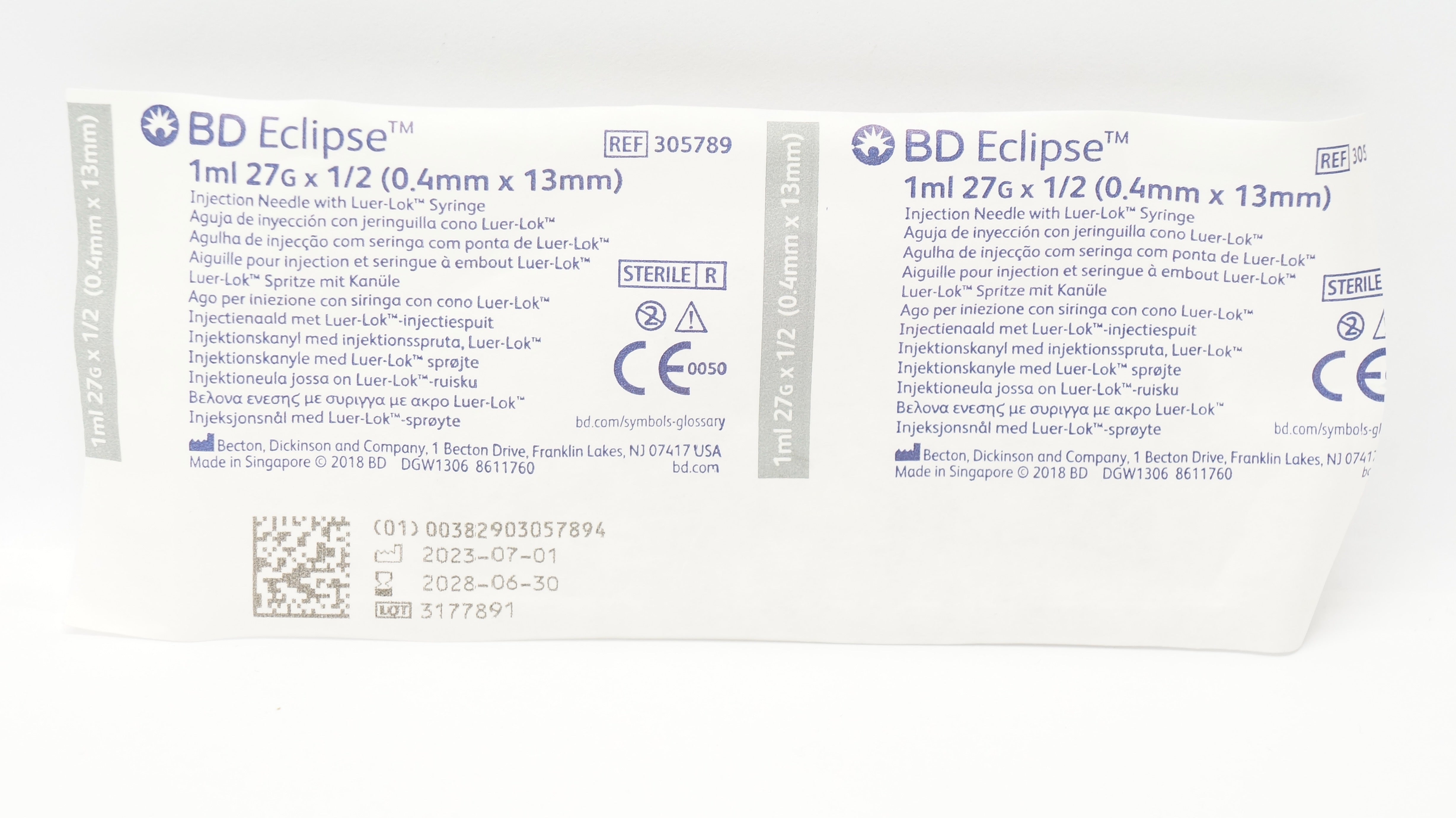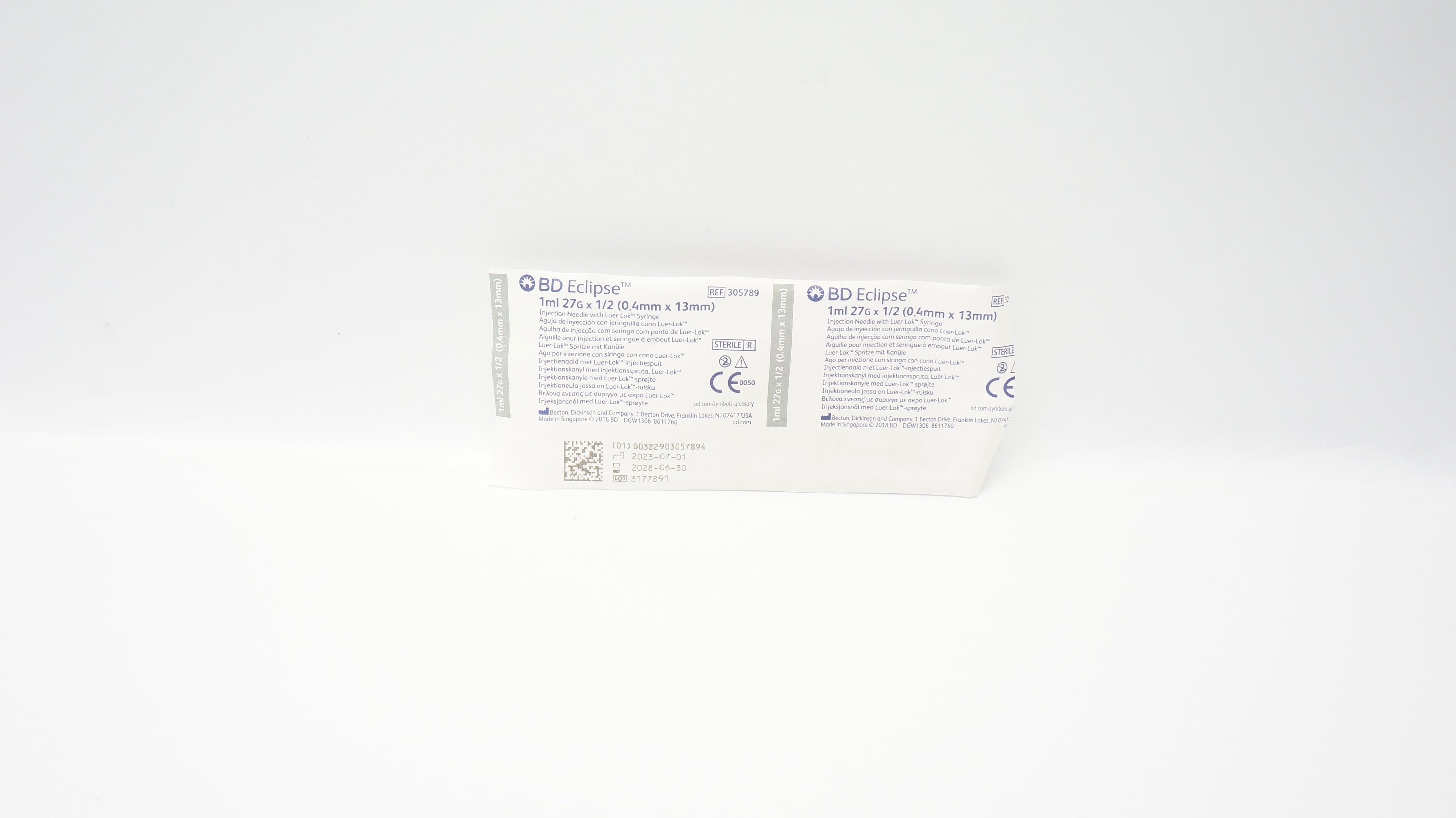 BD 305789 Eclipse Injection Needle with Luer-Lok Syringe 1ml 27G x 1/2inch
