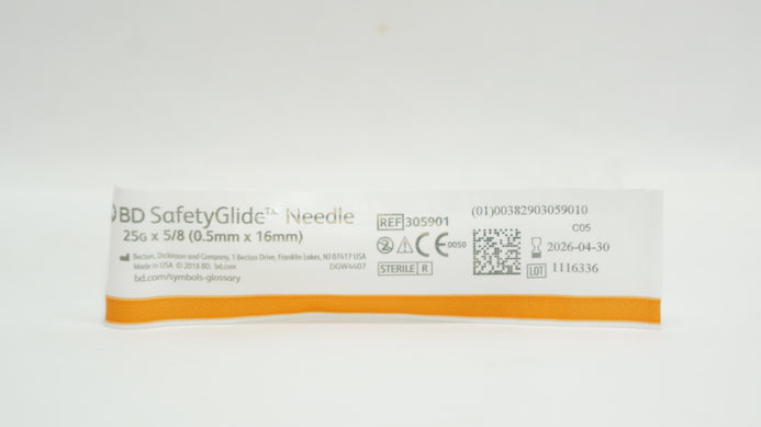 BD 305901 SafetyGlide Needle 25G x 5/8 inch