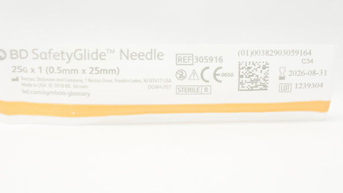 BD 305916 Safety Glide Ndle 25G x 1inch