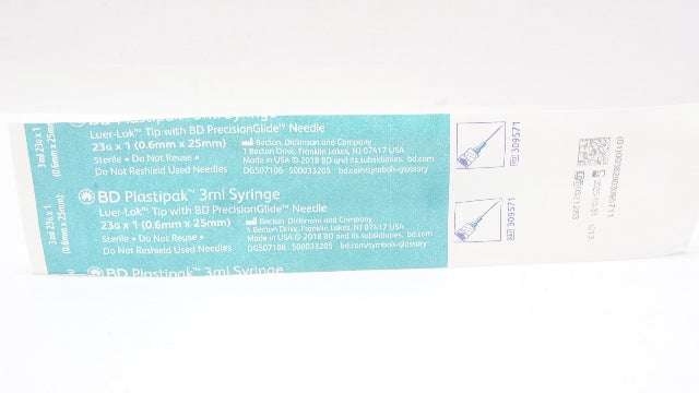 - BD 309571 Plastipak Syringe 3ml Luer-Lok Tip w/PrecisionGlide Ndle 23G x 1