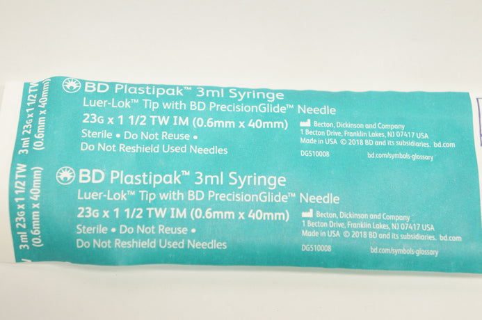 BD 309589 Plastipak 3ml Syringe Luer-Lok Tip W/BD PrecisionGlide Ndle 23Gx1-1/2