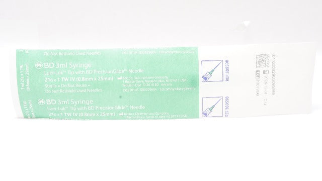 - BD 309598 3mL Syringe Luer-Lok Tip w/PresisionGlide Ndle. 21G x 1 TW IV