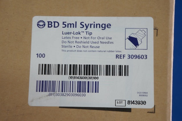 BD 309603 Leur-Lok Tip 5ml Syringe ~ Box of 100