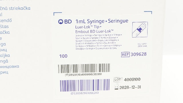 BD 309628 1ml Luer Lok Tip Syringe - Box of 100