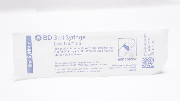 BD 309657 Luer-Lok Tip 3mL Syringe