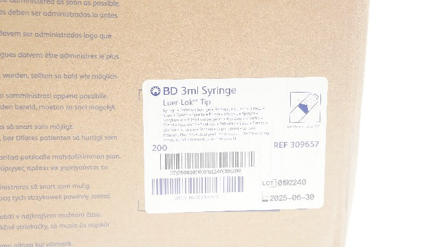 BD 309657 Plastipak 3ml Syringe Luer-Lok Tip - Box of 200