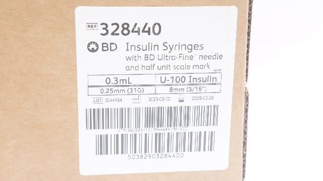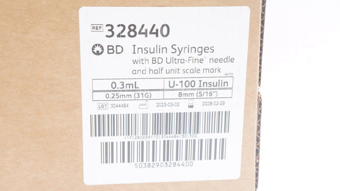 - BD 328440 Insulin Syringes W/Ultra Fine Ndle 0.3mL, 31G x 5/16In - Box of 100
