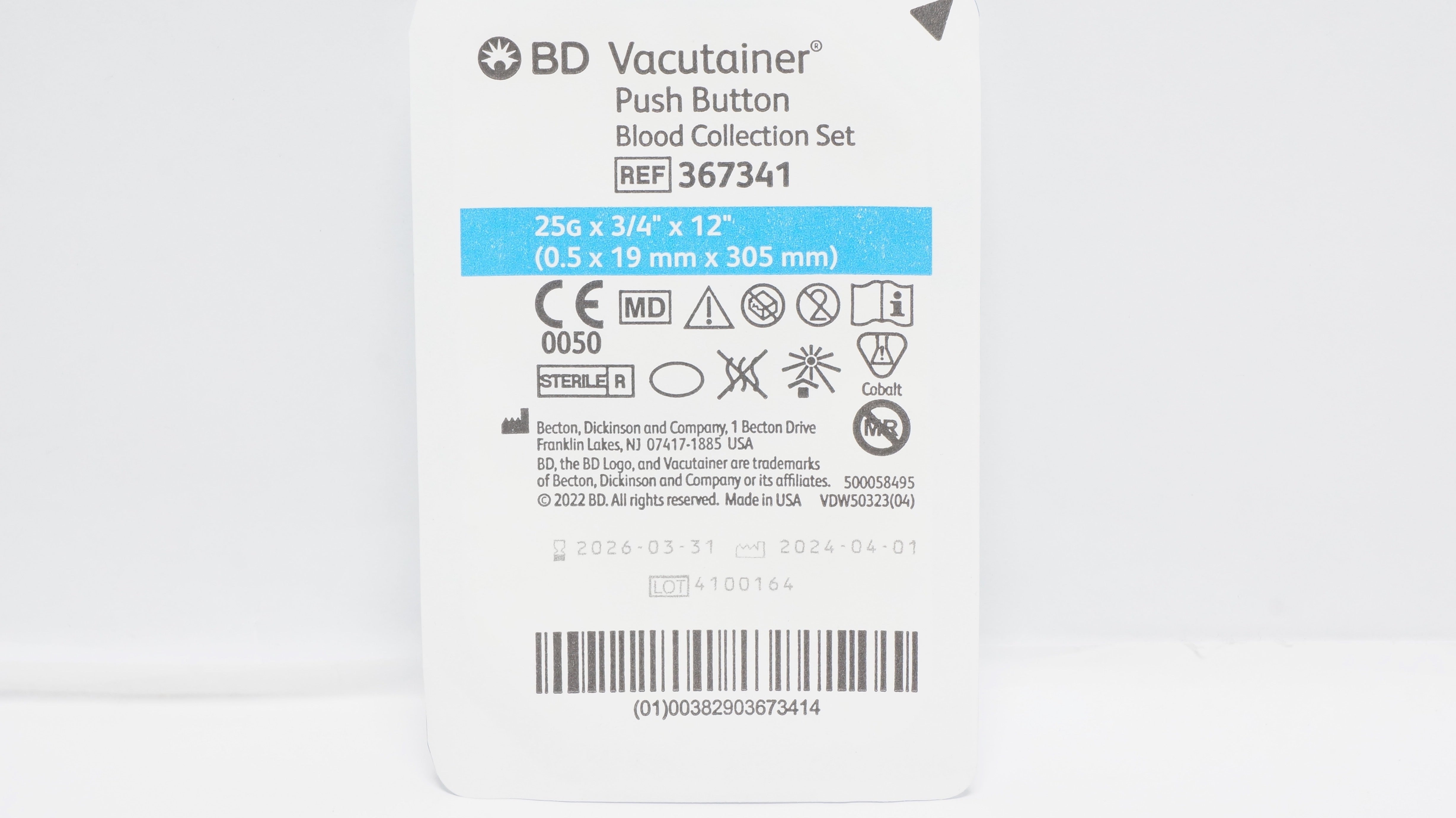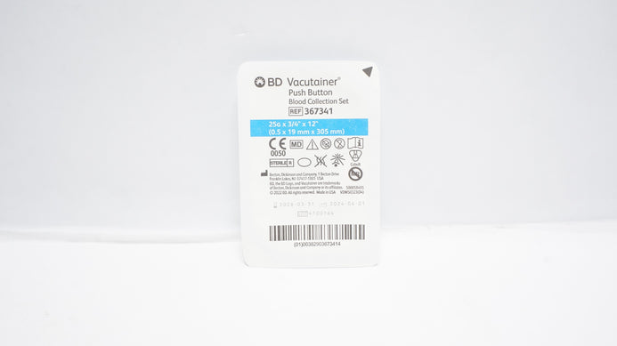 - BD 367341 Vacutainer Push Button Blood Collection Set 25G x 3/4inch x 12inch