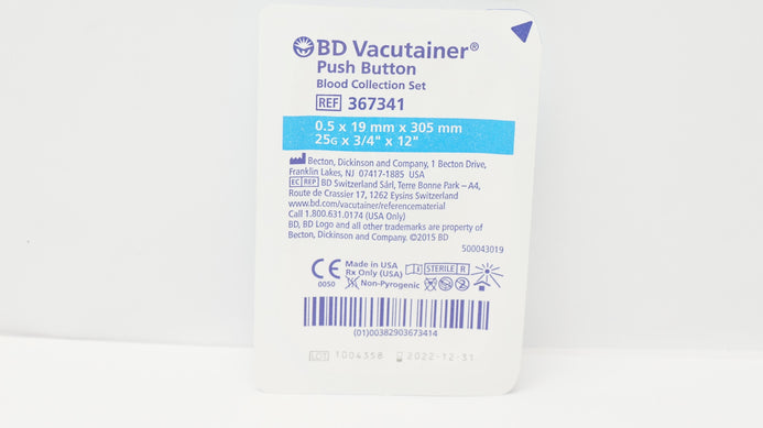 - BD 367341 Vacutainer Push Button Blood Collection Set 25G x 3/4inch x 12inch (x)