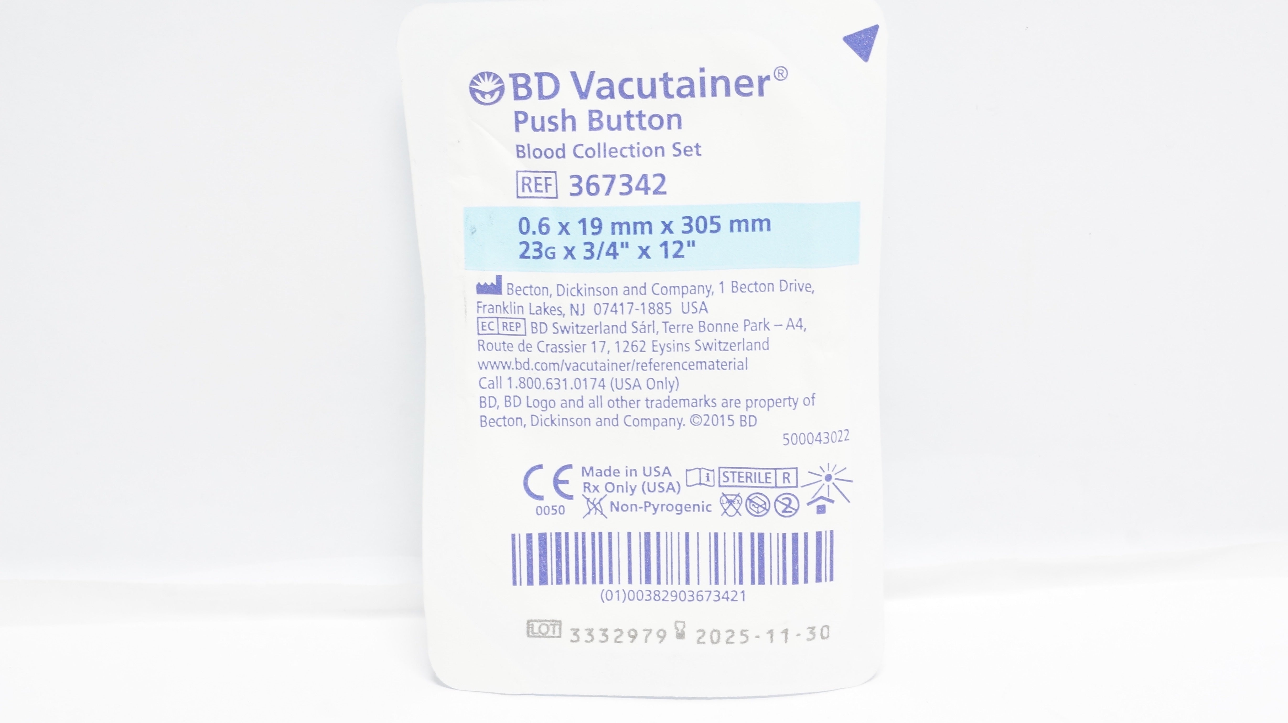 - BD 367342 Vacutainer Push Button Blood Collection Set 23G x 3/4inch x 12inch (x)