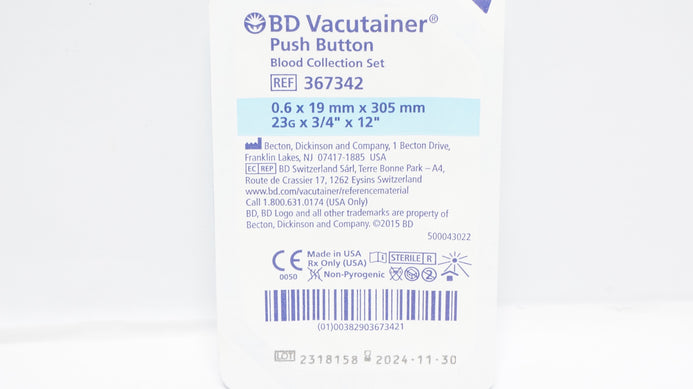 - BD 367342 Vacutainer Push Button Blood Collection Set 23G x 3/4inch x 12inch (x)