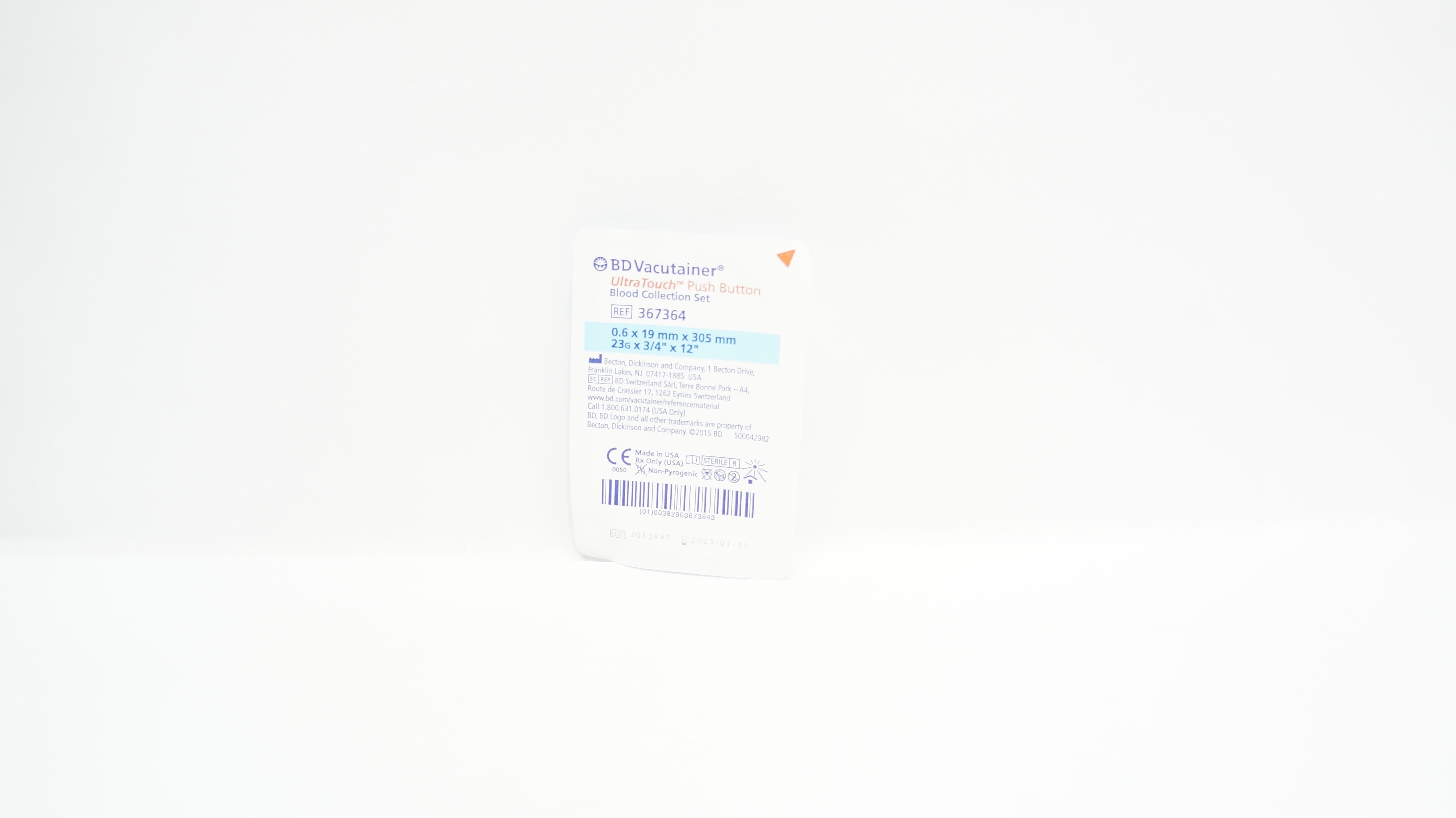 BD 367364 Vacutainer UltraTouch Push Button Blood Collection Set 23G x 3/4inch x 12inch