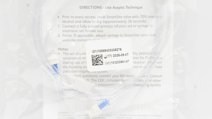 - BD 37262E SmartSite Extension Set 2-Ndle. Free Valves 6mL x 41inch (x)