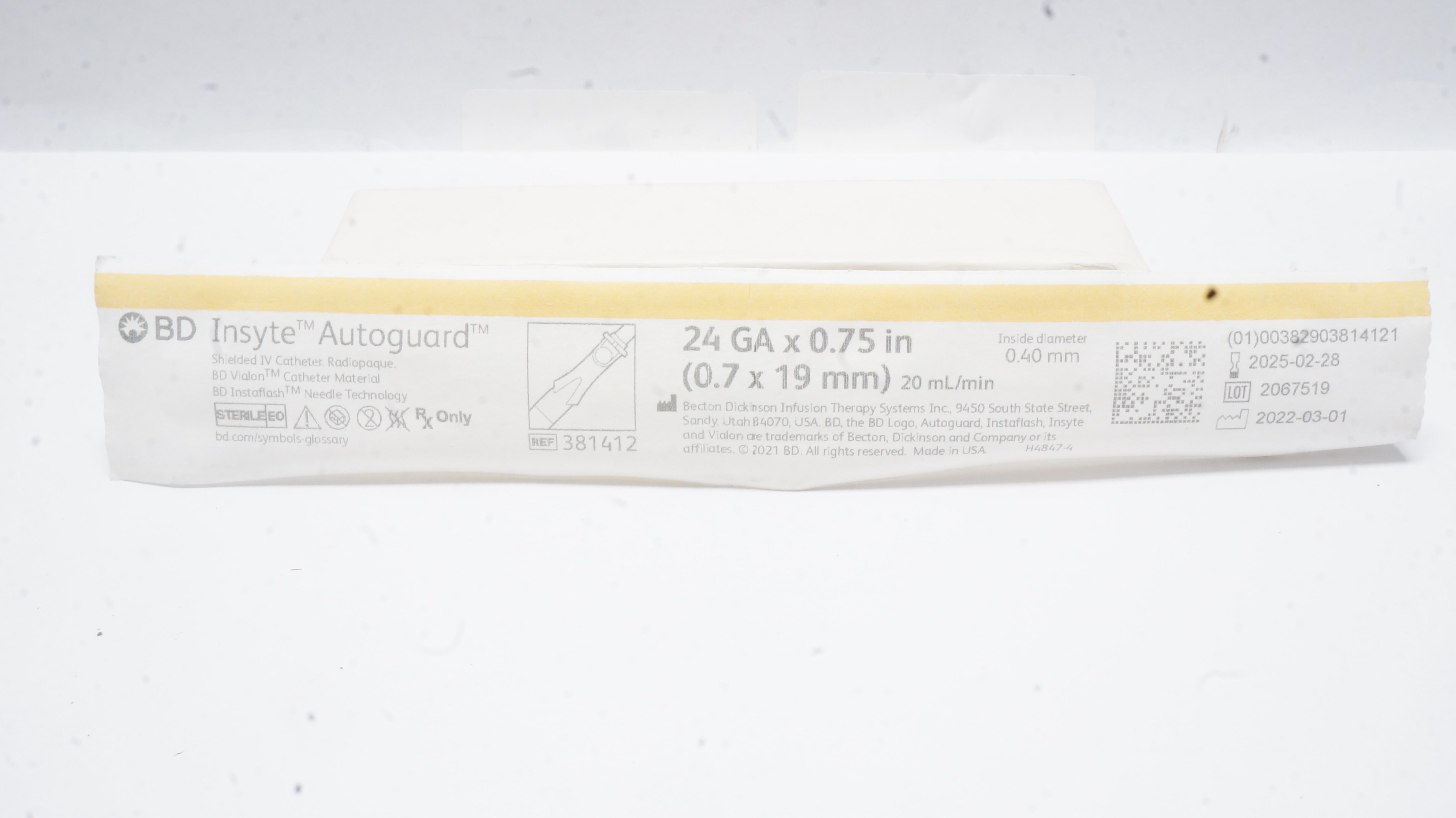 - BD 381412 BD Insyte Autoguard Shielded I.V. Cath. 24Ga x 0.75inch x 20mL/min (x)