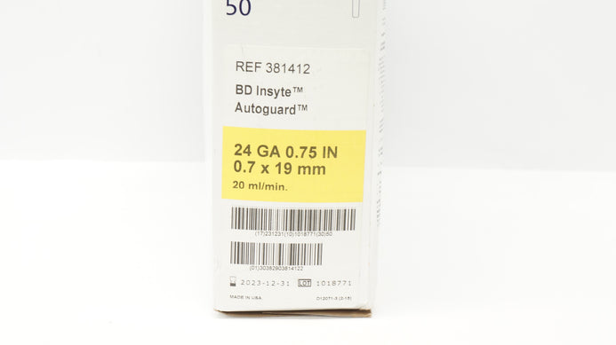 - BD 381412 BD Insyte Autoguard Shielded IV Cath. 24Ga x 0.75inch (x) - Box of 50