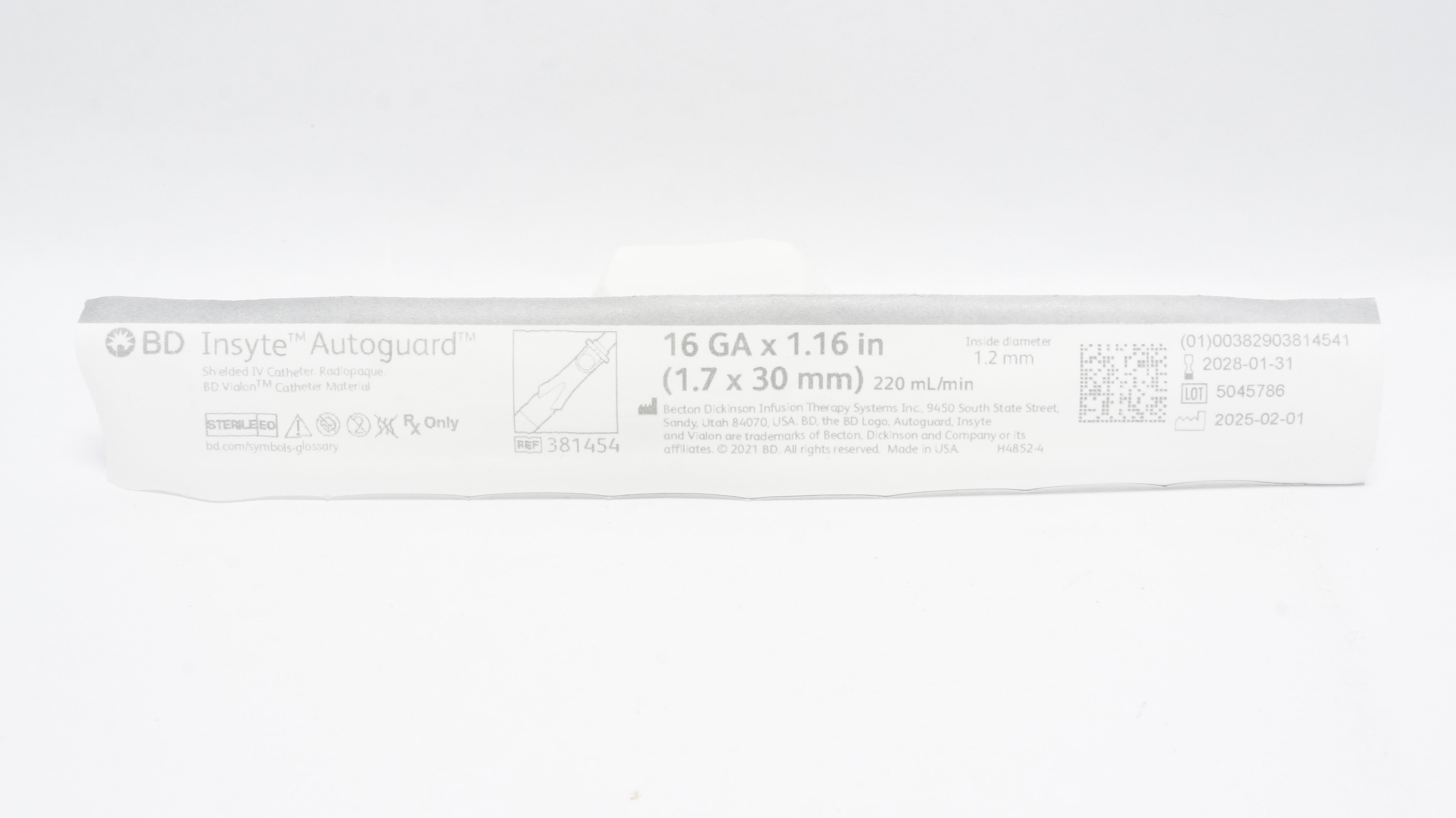 - BD 381454 Inset Autoguard Shielded IV Cath. 16Ga x 1.16inch 220mL/min