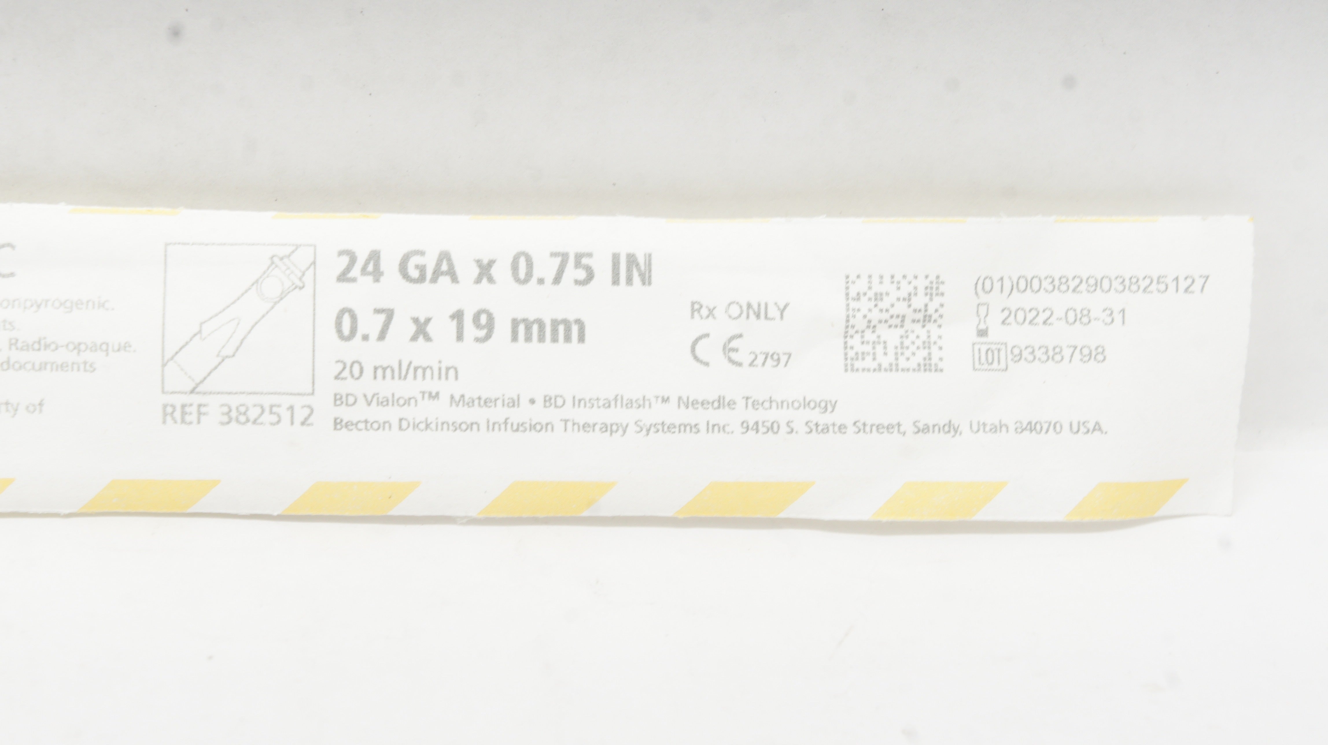- BD 382512 Insyte Autoguard BC Shielded IV Cath. 24GA x 0.75inch 20mL/min (x)