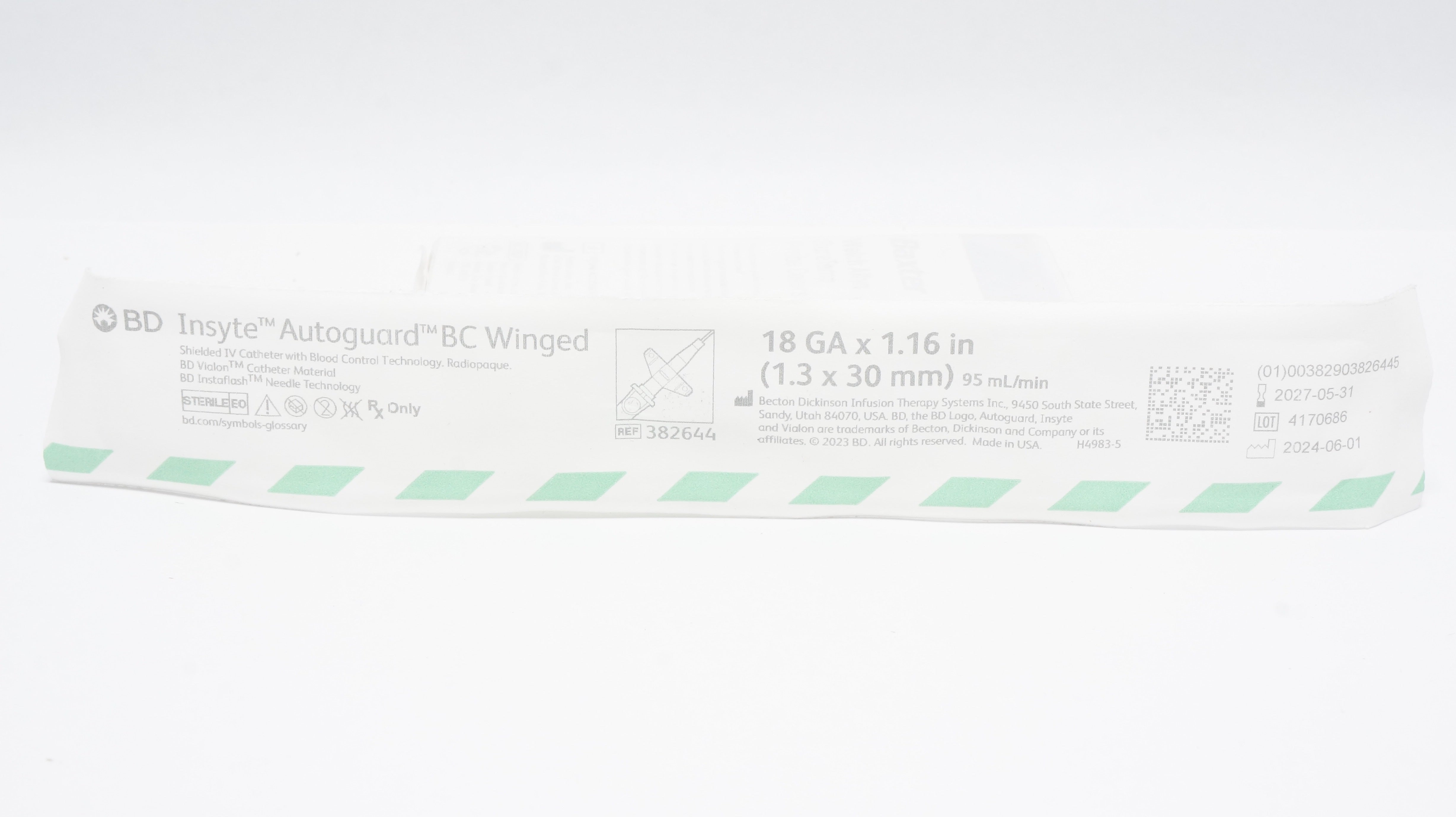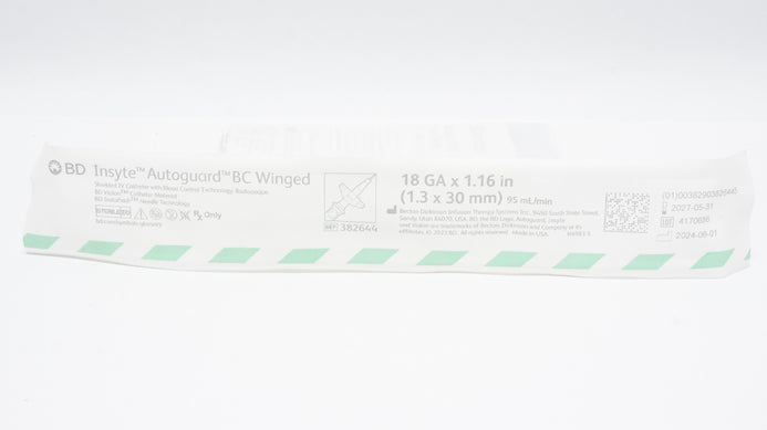 - BD 382644 Insyte Autoguard BC Winged Shielded IV Cath. 18GA x 1.16inch 95ml/min