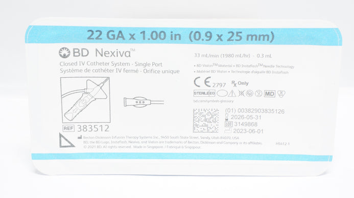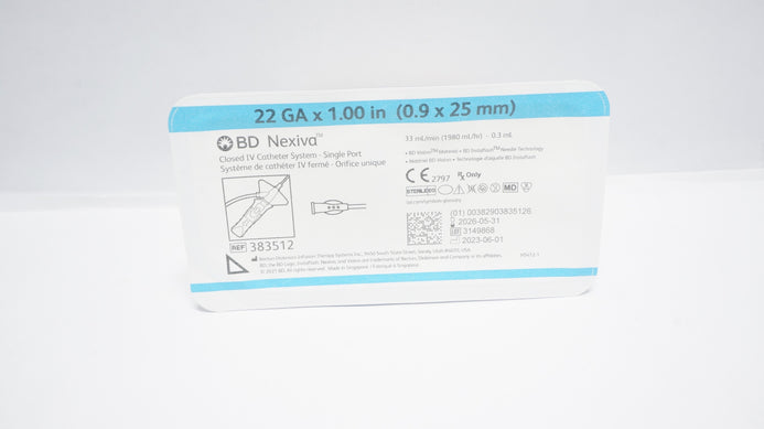 - BD 383512 Nexiva Clodsed IV Cath. System 22GA x 1.00inch 33mL/min