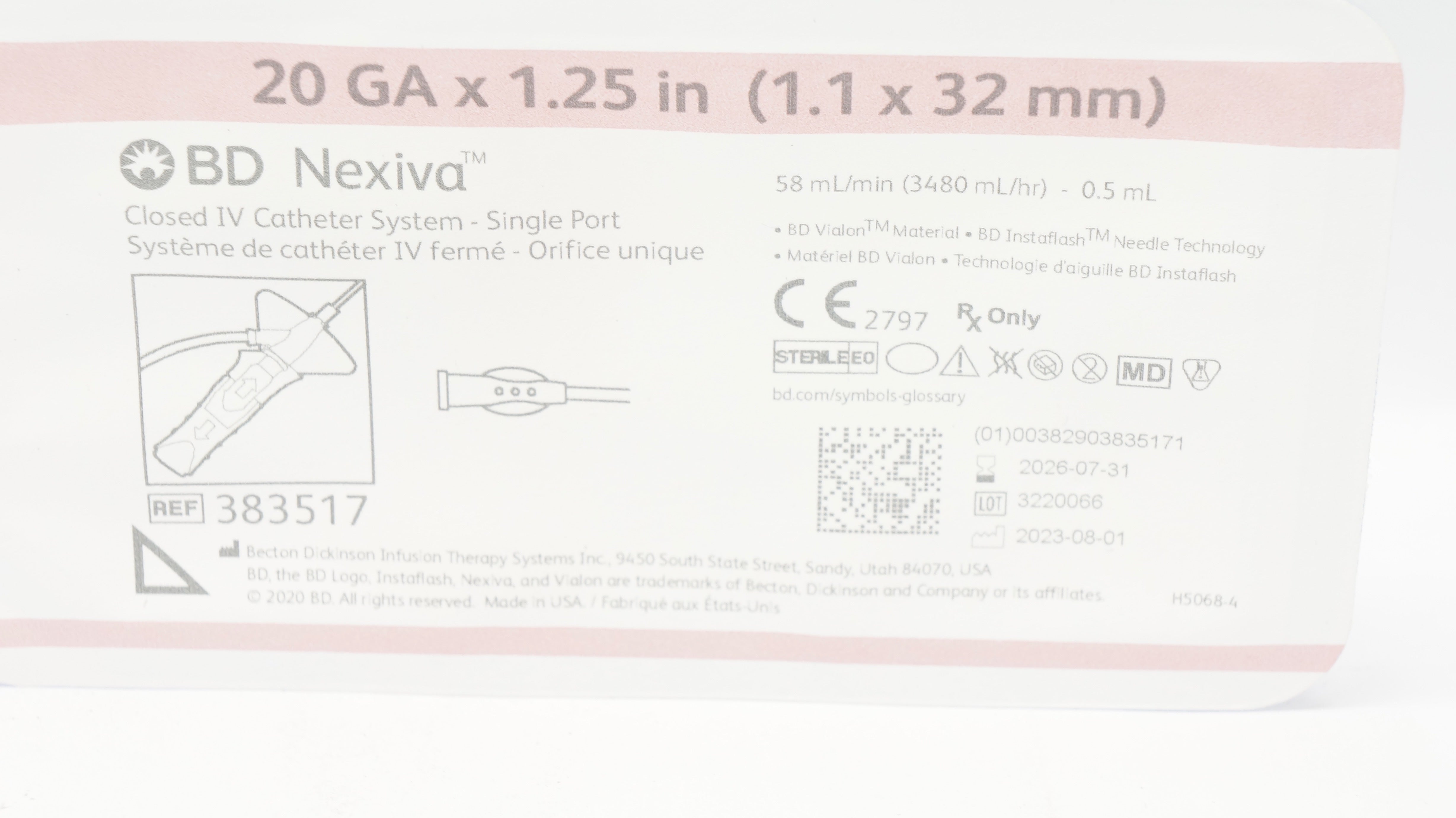 BD 383517 Nexiva Closed IV Cath. System 20GA 1.25Inch 1.1 x 32 mm